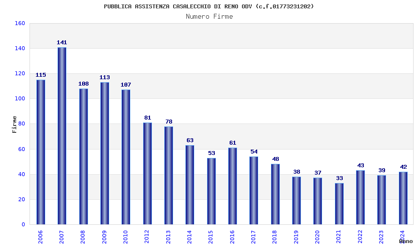 | 2024 | 42 | 1.382,06 | 32,91 | 31.041 | 2.696 | 631 | 14 |