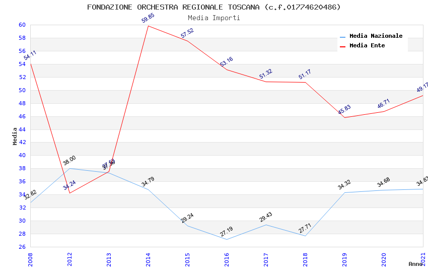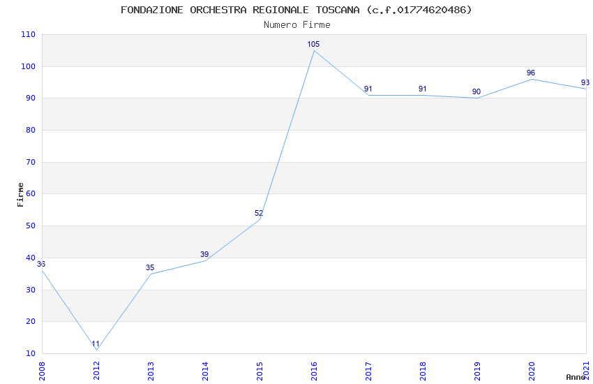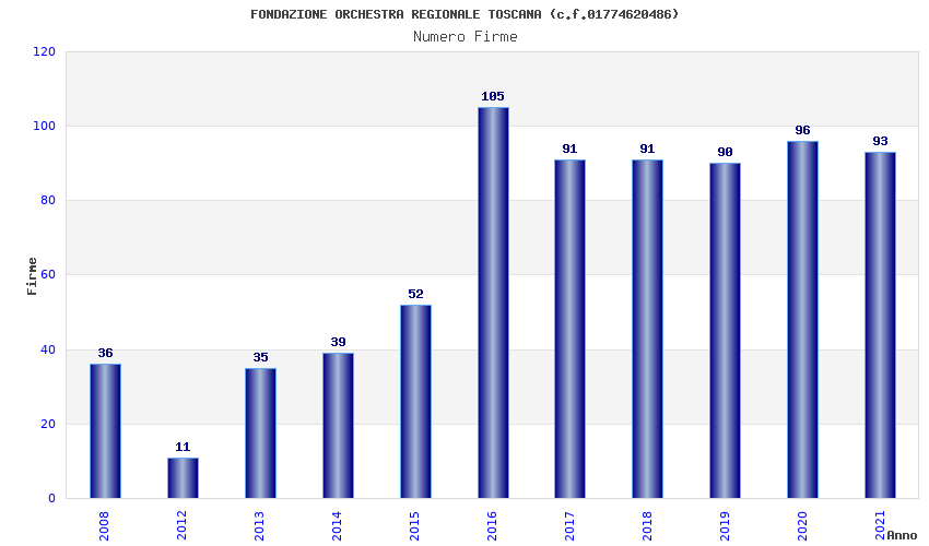 | Anno | Firme | Importi | Media | Naz. | Reg. | Prov. | Comu. |