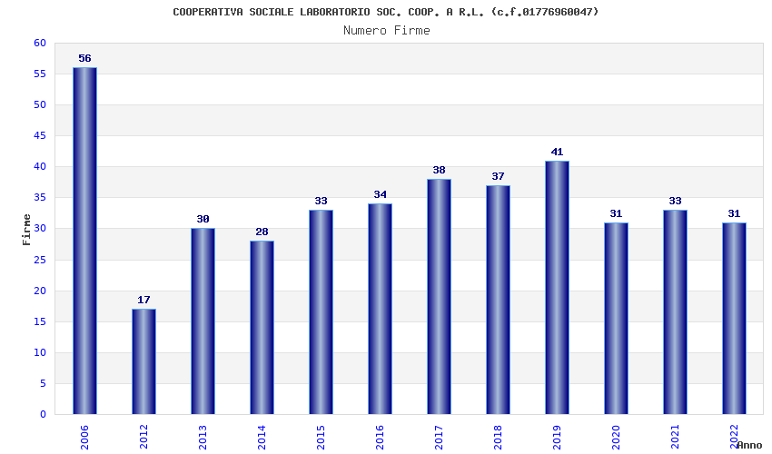| Anno | Firme | Importi | Media | Naz. | Reg. | Prov. | Comu. |