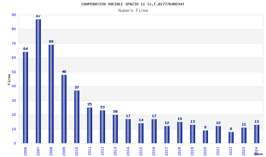 | Anno | Firme | Importi | Media | Naz. | Reg. | Prov. | Comu. |