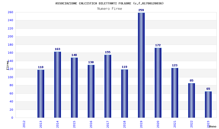 | 2019 | 259 | 5.744,21 | 22,18 | 9.681 | 511 | 82 | 7 |