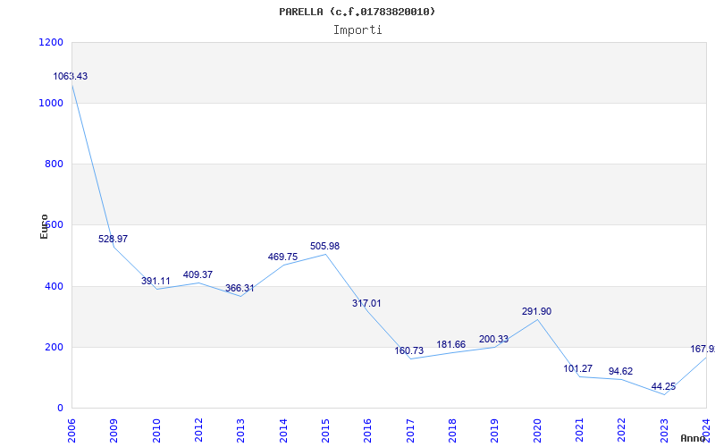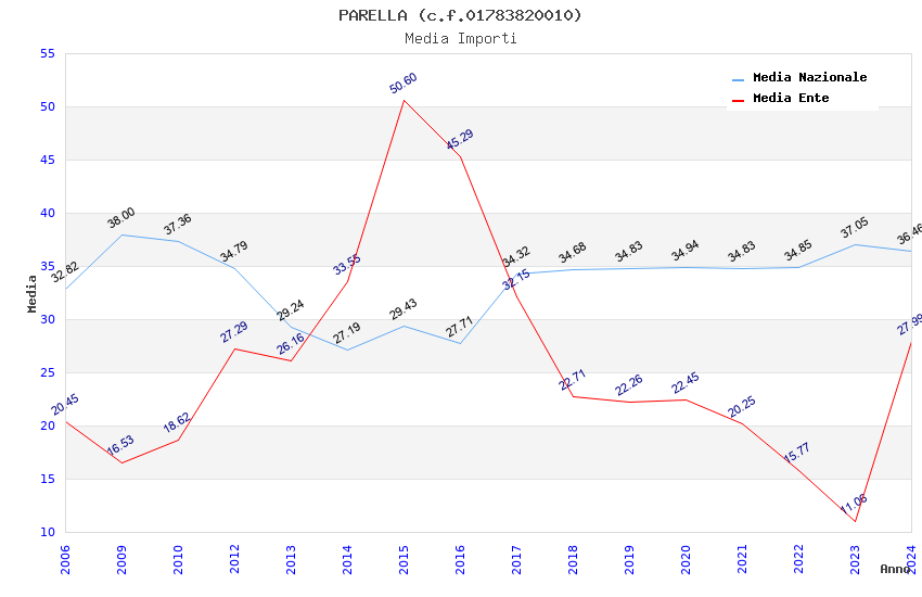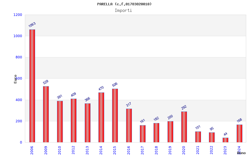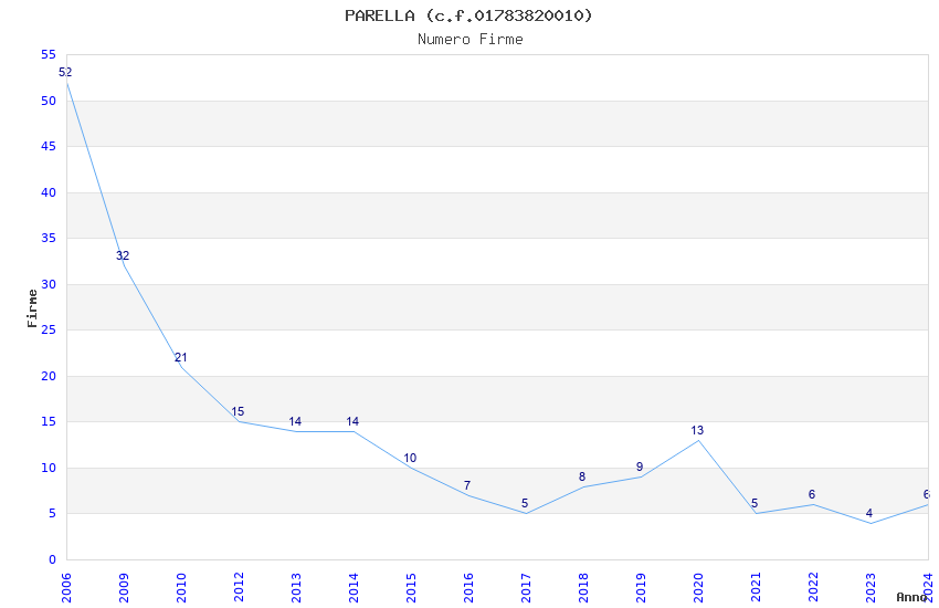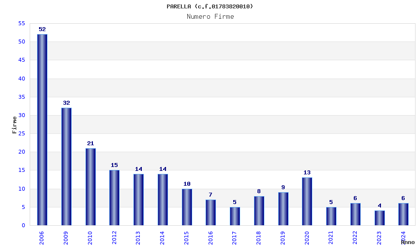 | Anno | Firme | Importi | Media | Naz. | Reg. | Prov. | Comu. |