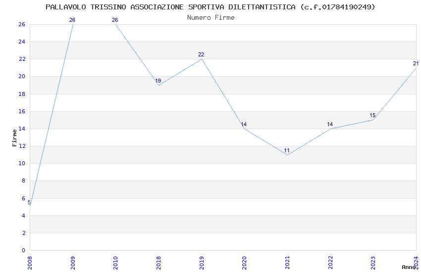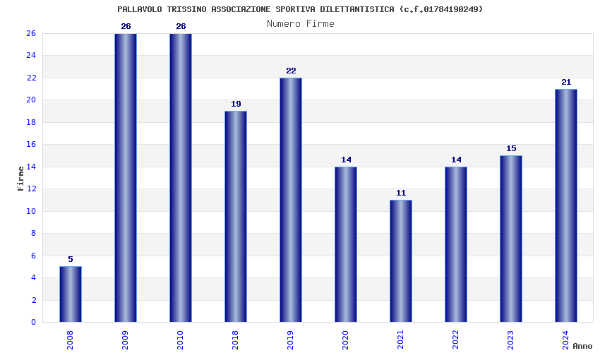 | Anno | Firme | Importi | Media | Naz. | Reg. | Prov. | Comu. |