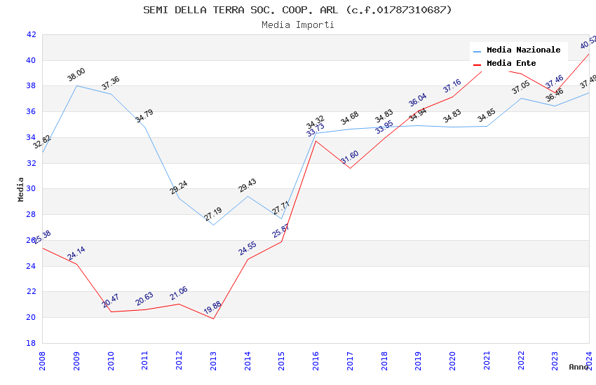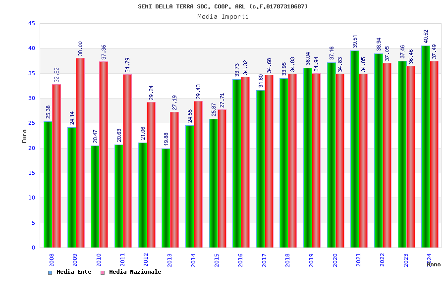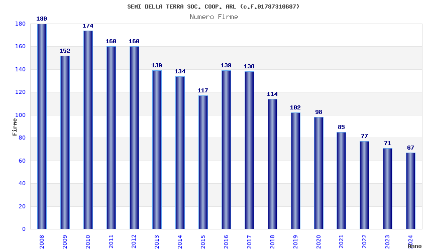 | Anno | Firme | Importi | Media | Naz. | Reg. | Prov. | Comu. |