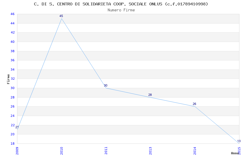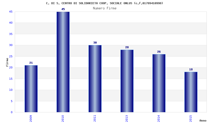 | Anno | Firme | Importi | Media | Naz. | Reg. | Prov. | Comu. |