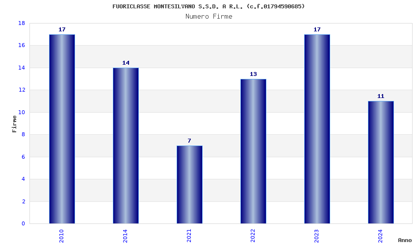 | Anno | Firme | Importi | Media | Naz. | Reg. | Prov. | Comu. |