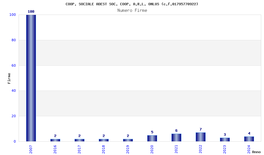 | Anno | Firme | Importi | Media | Naz. | Reg. | Prov. | Comu. |