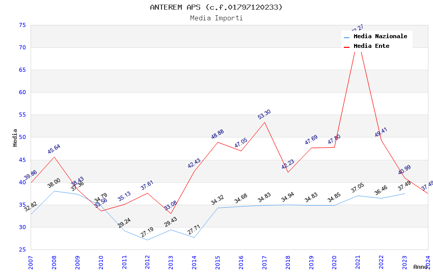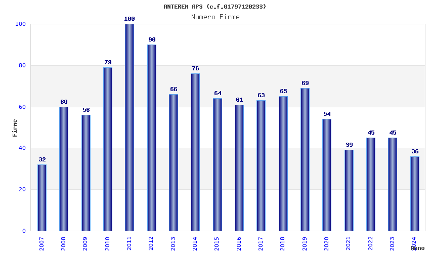 | Anno | Firme | Importi | Media | Naz. | Reg. | Prov. | Comu. |
