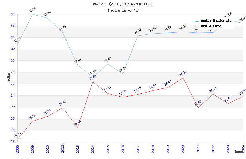 | Anno | Firme | Importi | Media | Naz. | Reg. | Prov. | Comu. |
