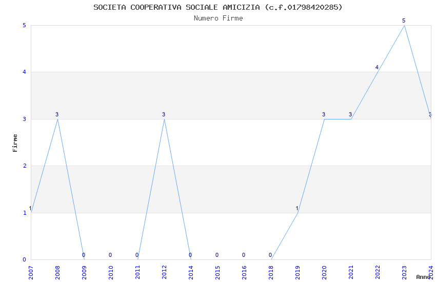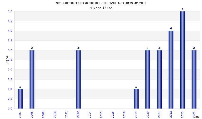 | Anno | Firme | Importi | Media | Naz. | Reg. | Prov. | Comu. |