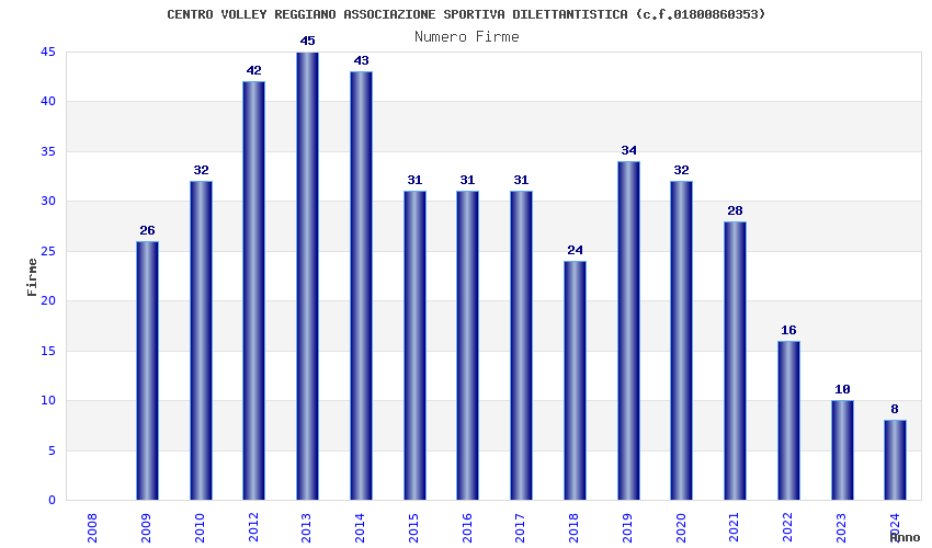 | Anno | Firme | Importi | Media | Naz. | Reg. | Prov. | Comu. |