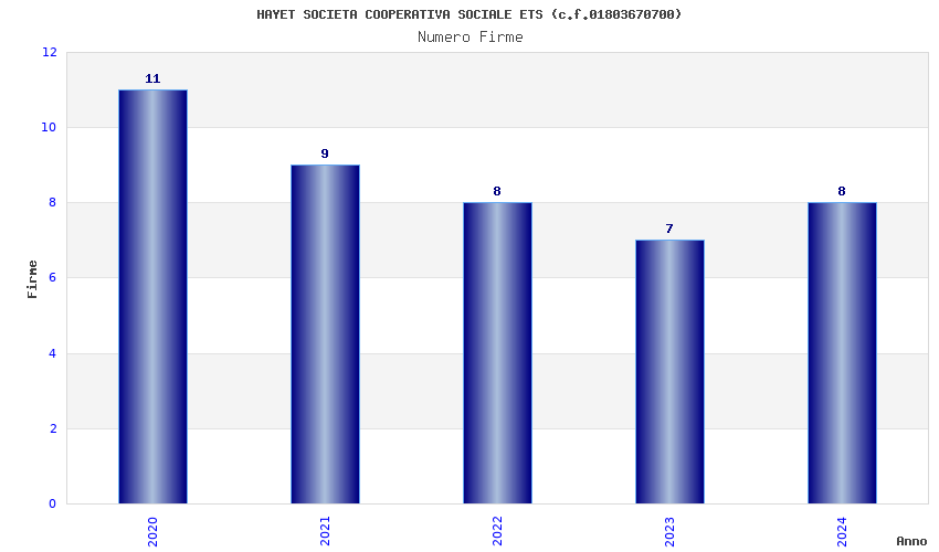 | Anno | Firme | Importi | Media | Naz. | Reg. | Prov. | Comu. |