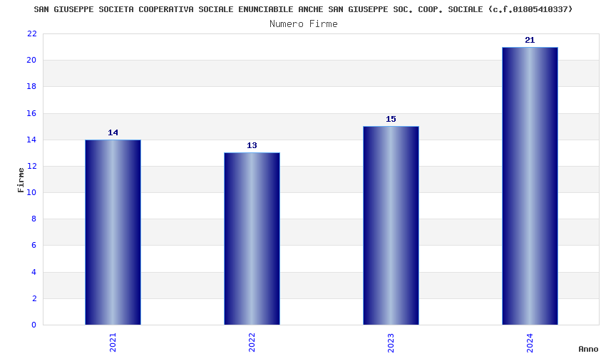 | Anno | Firme | Importi | Media | Naz. | Reg. | Prov. | Comu. |