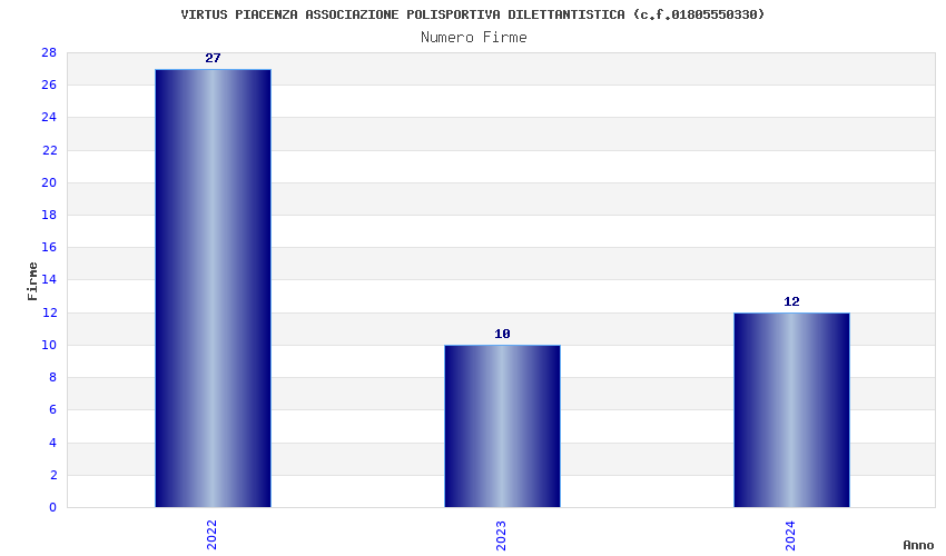 | Anno | Firme | Importi | Media | Naz. | Reg. | Prov. | Comu. |