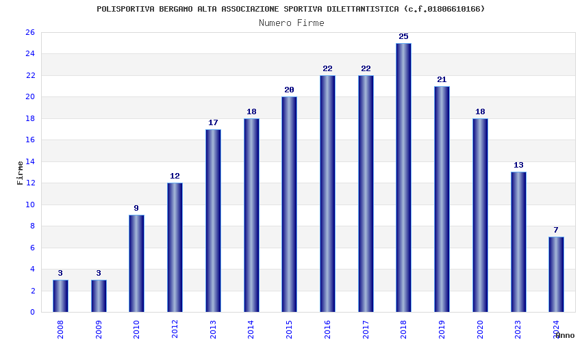 | 2018 | 25 | 1.401,54 | 56,06 | 29.405 | 6.422 | 702 | 174 |
