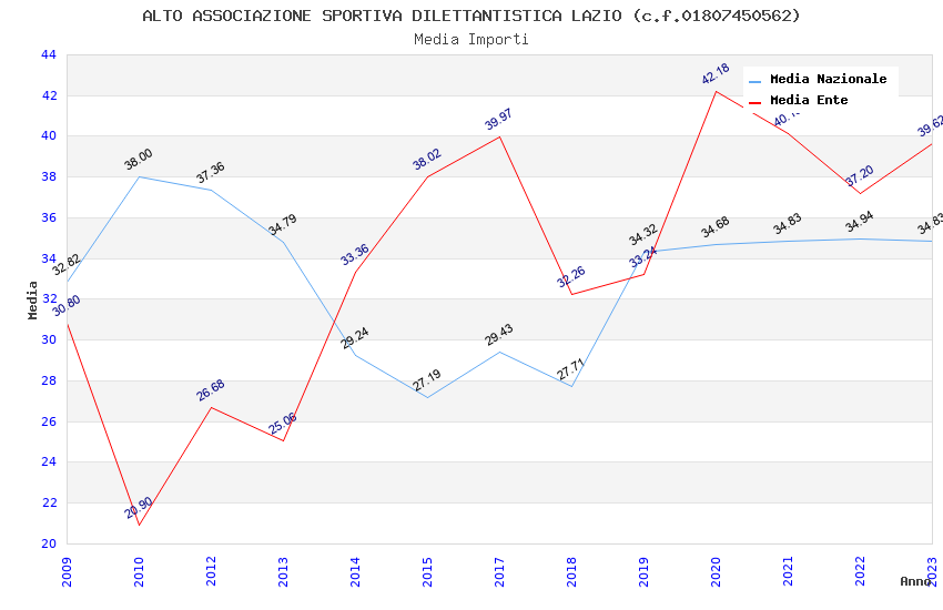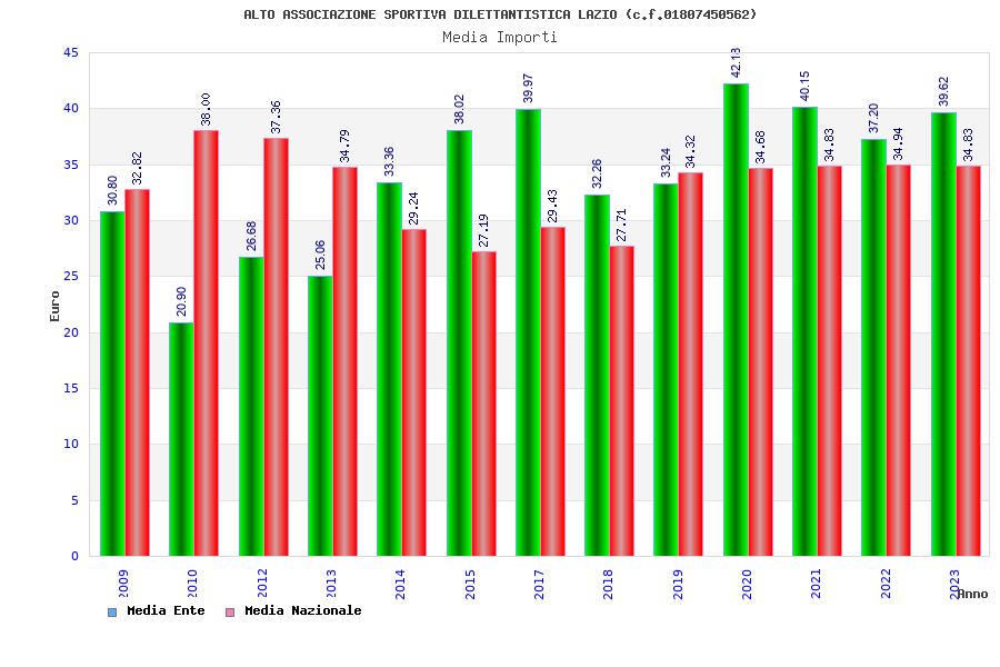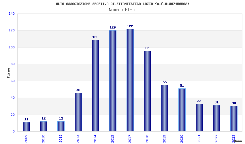 | Anno | Firme | Importi | Media | Naz. | Reg. | Prov. | Comu. |