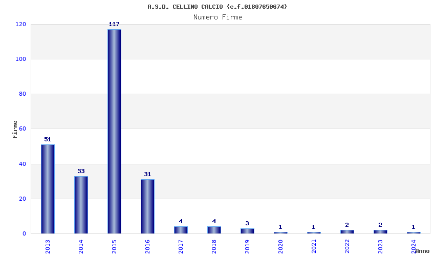 | Anno | Firme | Importi | Media | Naz. | Reg. | Prov. | Comu. |