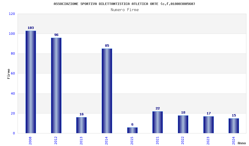 | Anno | Firme | Importi | Media | Naz. | Reg. | Prov. | Comu. |