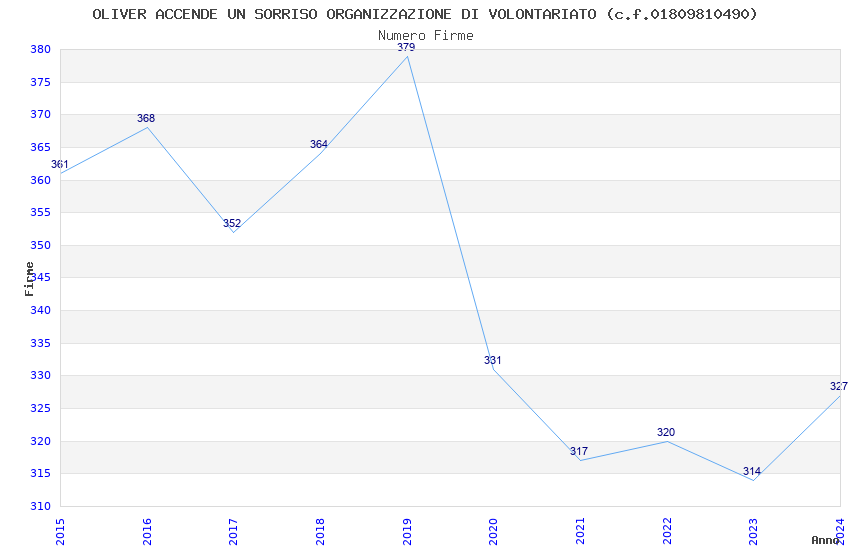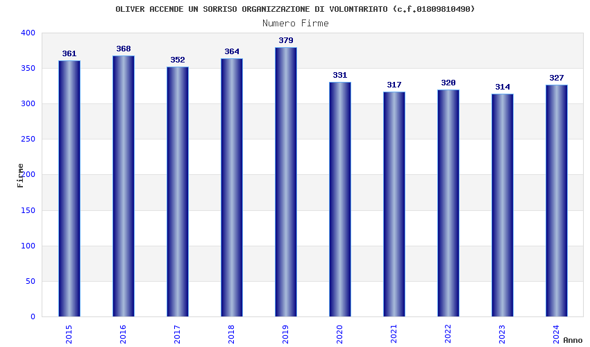| Anno | Firme | Importi | Media | Naz. | Reg. | Prov. | Comu. |