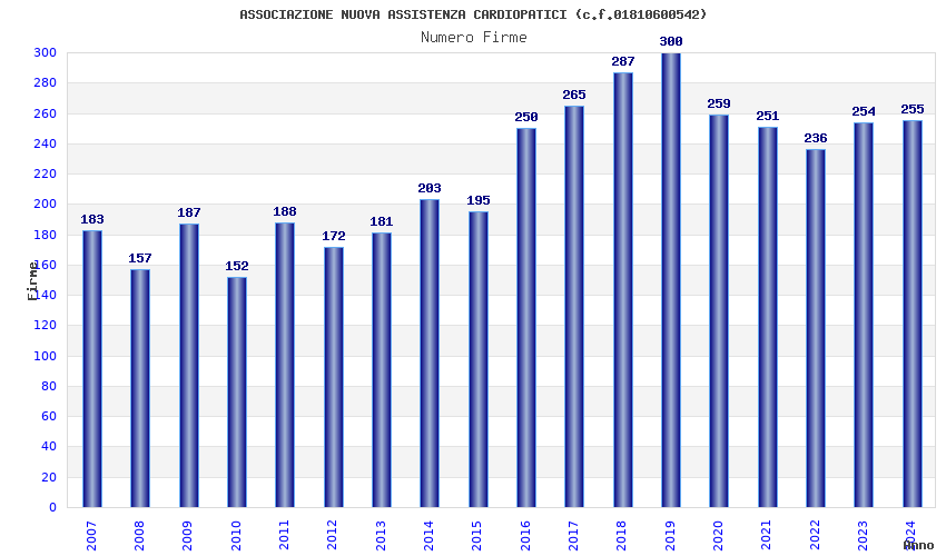 | 2019 | 300 | 8.039,26 | 26,80 | 6.701 | 89 | 71 | 1 |