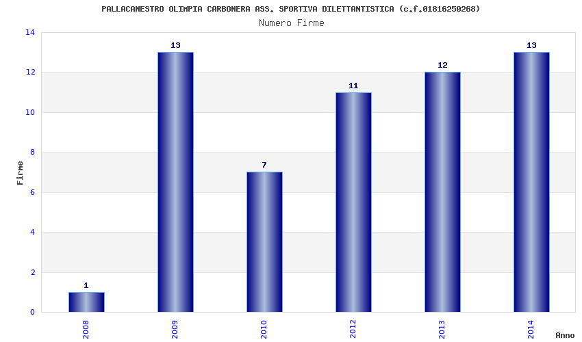 | Anno | Firme | Importi | Media | Naz. | Reg. | Prov. | Comu. |