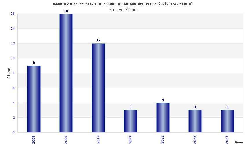 | Anno | Firme | Importi | Media | Naz. | Reg. | Prov. | Comu. |