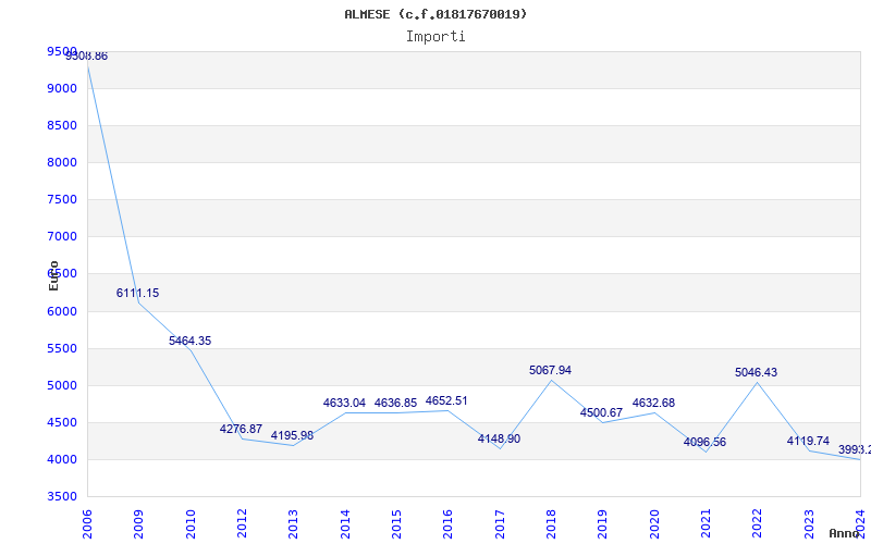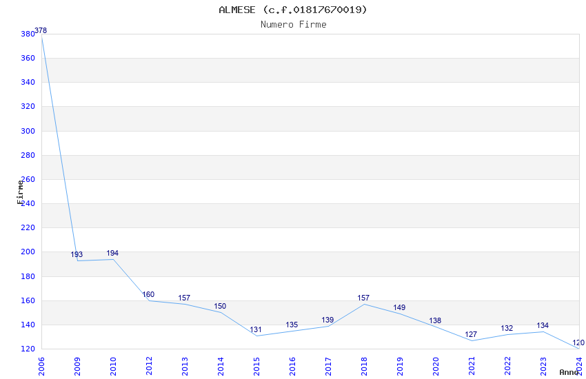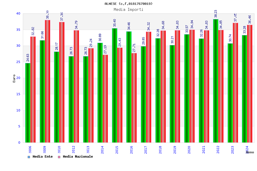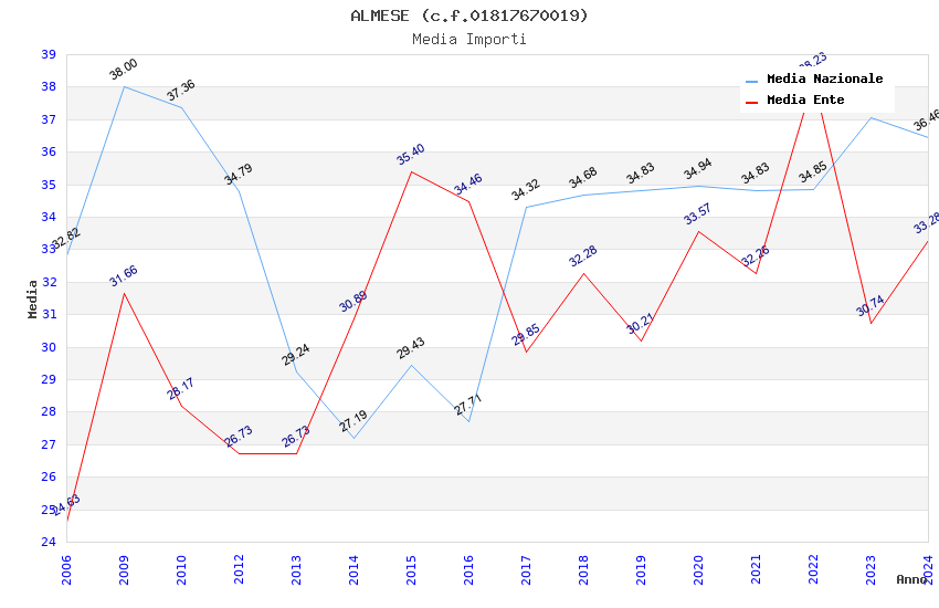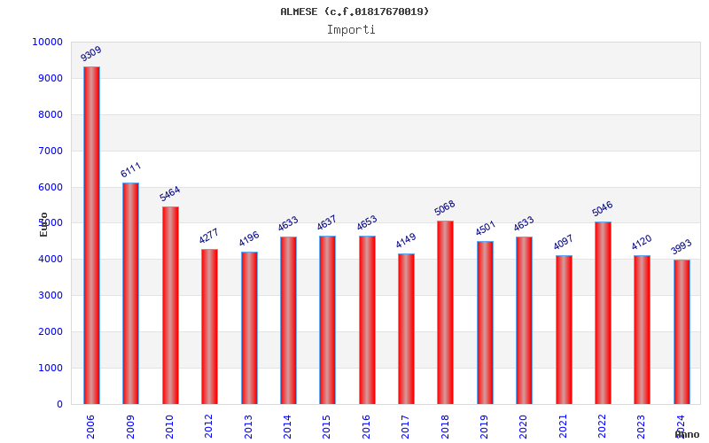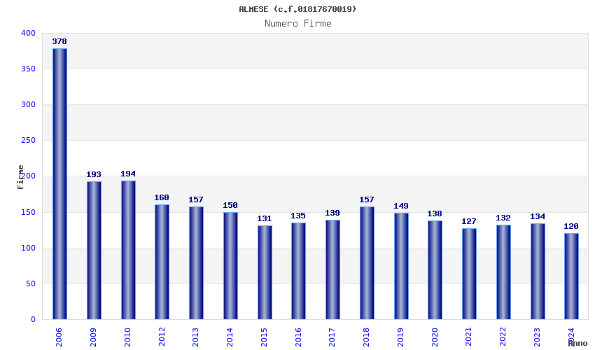 | Anno | Firme | Importi | Media | Naz. | Reg. | Prov. | Comu. |