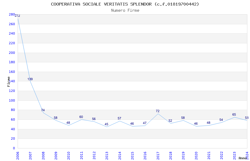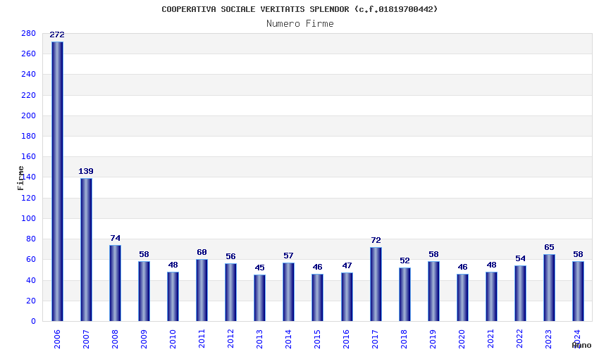 | Anno | Firme | Importi | Media | Naz. | Reg. | Prov. | Comu. |