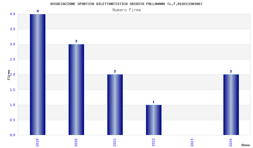 | Anno | Firme | Importi | Media | Naz. | Reg. | Prov. | Comu. |