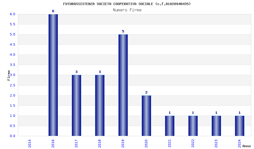| Anno | Firme | Importi | Media | Naz. | Reg. | Prov. | Comu. |