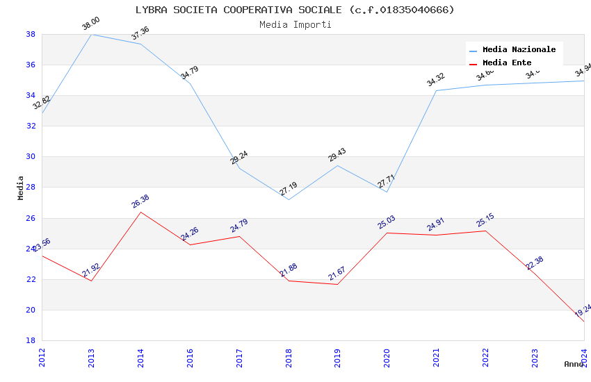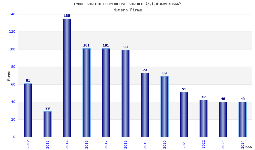 | Anno | Firme | Importi | Media | Naz. | Reg. | Prov. | Comu. |
