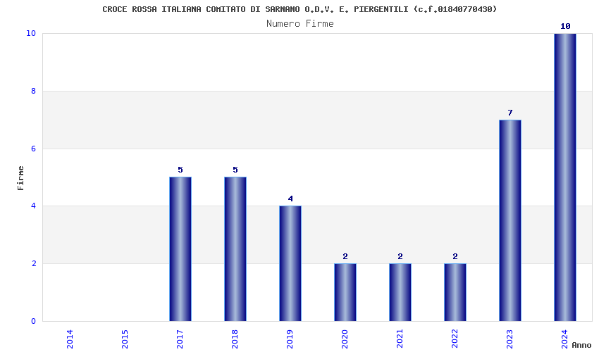 | Anno | Firme | Importi | Media | Naz. | Reg. | Prov. | Comu. |