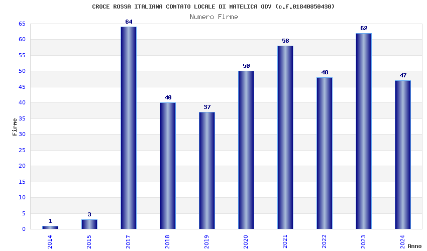 | Anno | Firme | Importi | Media | Naz. | Reg. | Prov. | Comu. |