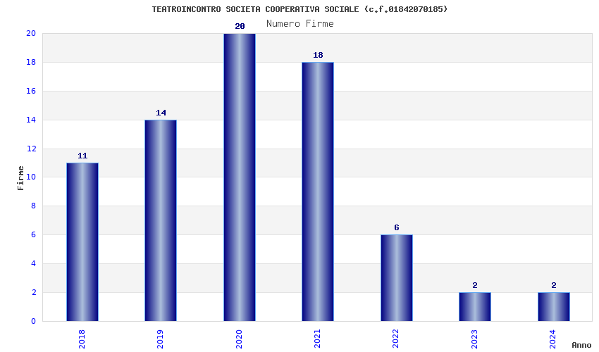 | Anno | Firme | Importi | Media | Naz. | Reg. | Prov. | Comu. |