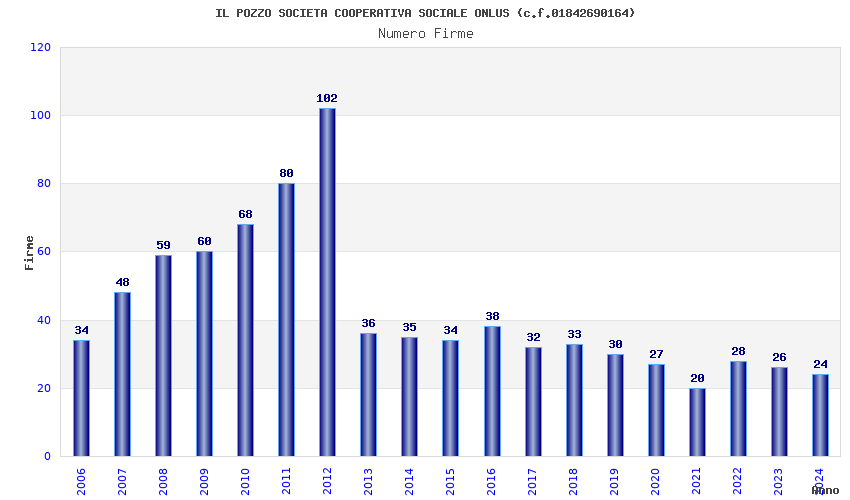 | Anno | Firme | Importi | Media | Naz. | Reg. | Prov. | Comu. |