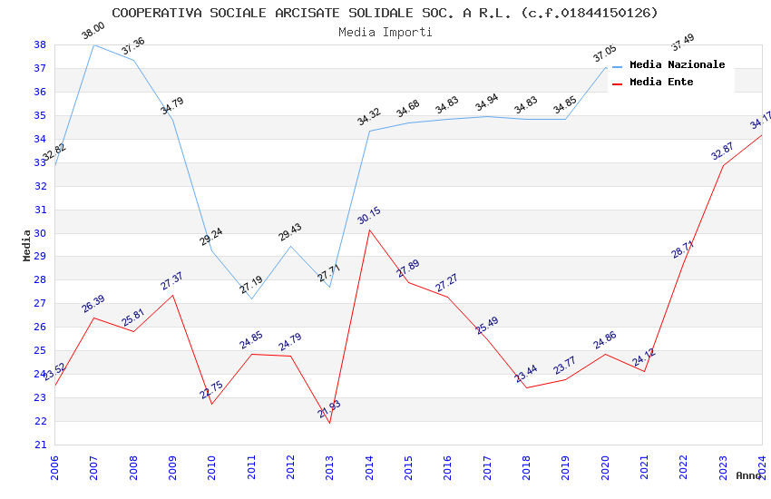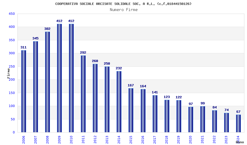 | Anno | Firme | Importi | Media | Naz. | Reg. | Prov. | Comu. |