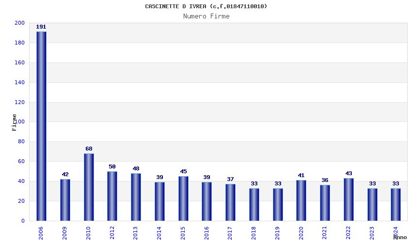 Anno Firme Importi Media Naz. Reg. Prov. Comu.