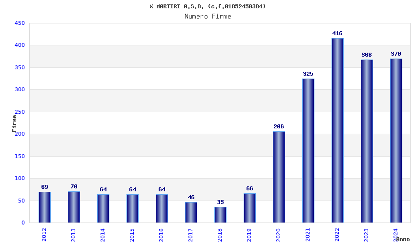 Anno Firme Importi Media Naz. Reg. Prov. Comu.