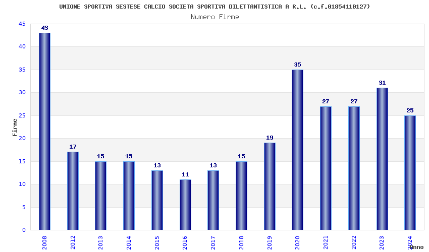 | Anno | Firme | Importi | Media | Naz. | Reg. | Prov. | Comu. |