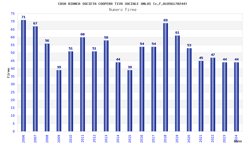 | Anno | Firme | Importi | Media | Naz. | Reg. | Prov. | Comu. |