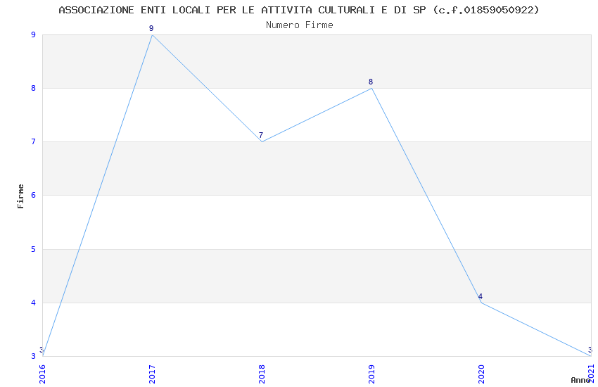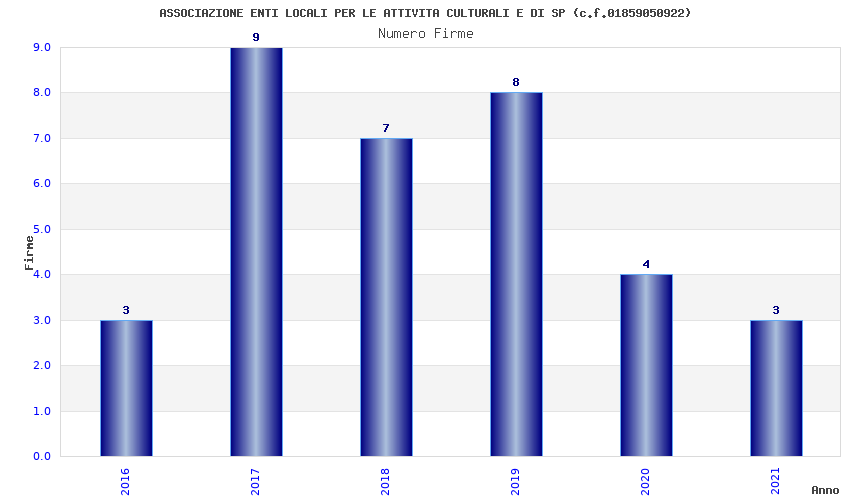 | Anno | Firme | Importi | Media | Naz. | Reg. | Prov. | Comu. |