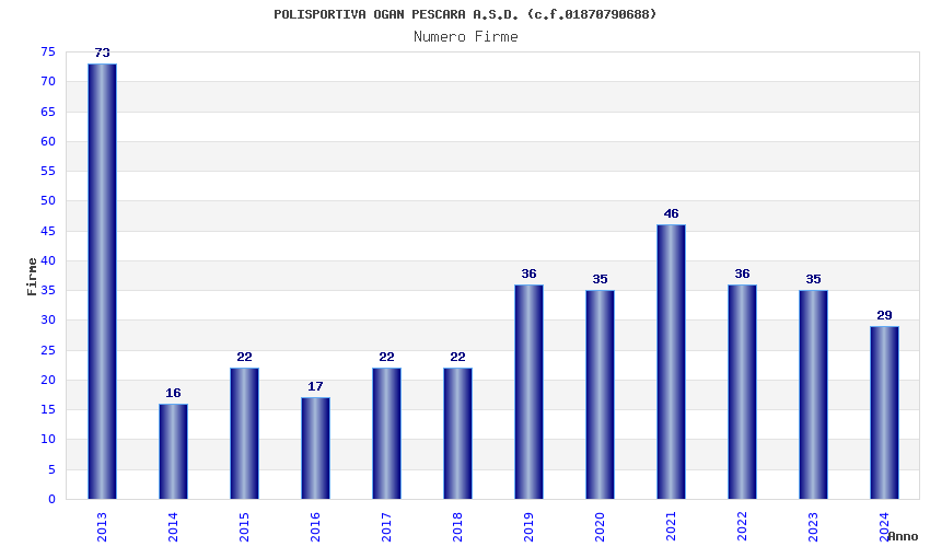 | 2013 | 73 | 1.934,51 | 26,50 | 18.811 | 296 | 78 | 54 |