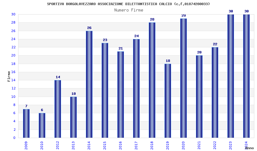 | Anno | Firme | Importi | Media | Naz. | Reg. | Prov. | Comu. |