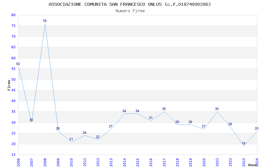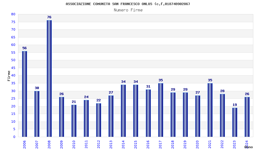 | Anno | Firme | Importi | Media | Naz. | Reg. | Prov. | Comu. |