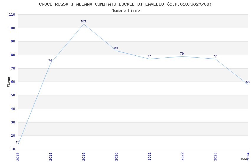 | 2020 | 83 | 5.511,01 | 66,40 | 10.304 | 70 | 52 | 1 |