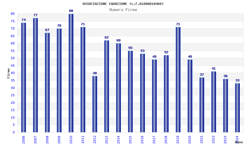| Anno | Firme | Importi | Media | Naz. | Reg. | Prov. | Comu. |