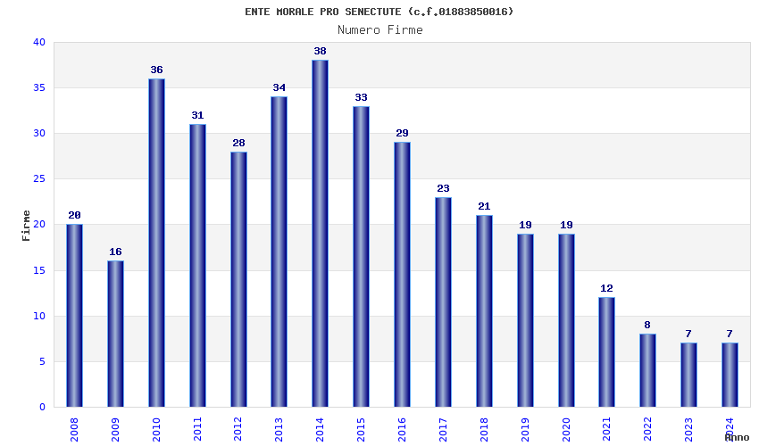 | Anno | Firme | Importi | Media | Naz. | Reg. | Prov. | Comu. |