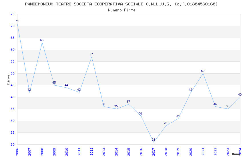 | 2017 | 21 | 1.125,73 | 53,61 | 32.560 | 7.055 | 790 | 178 |