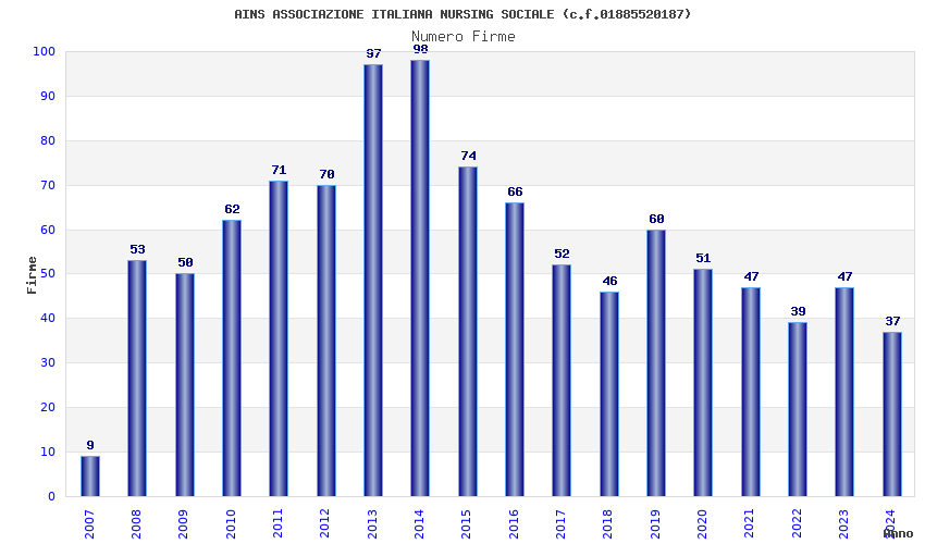 | Anno | Firme | Importi | Media | Naz. | Reg. | Prov. | Comu. |