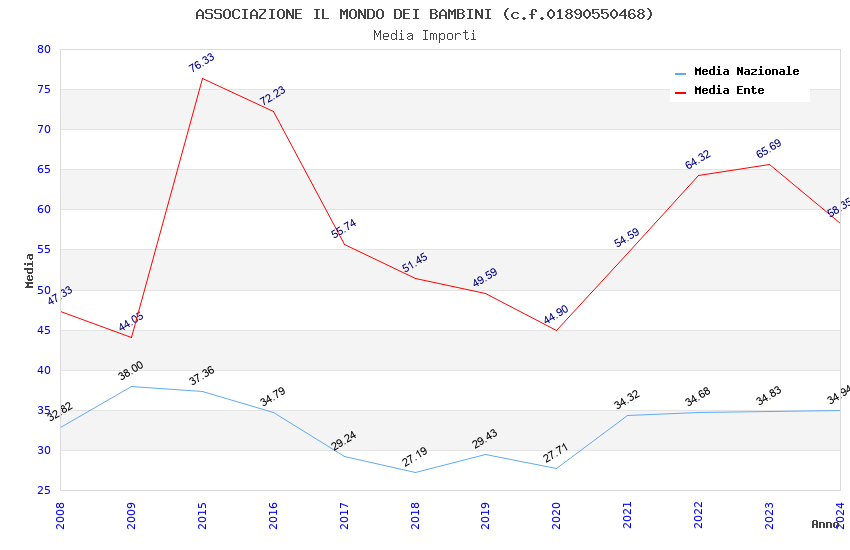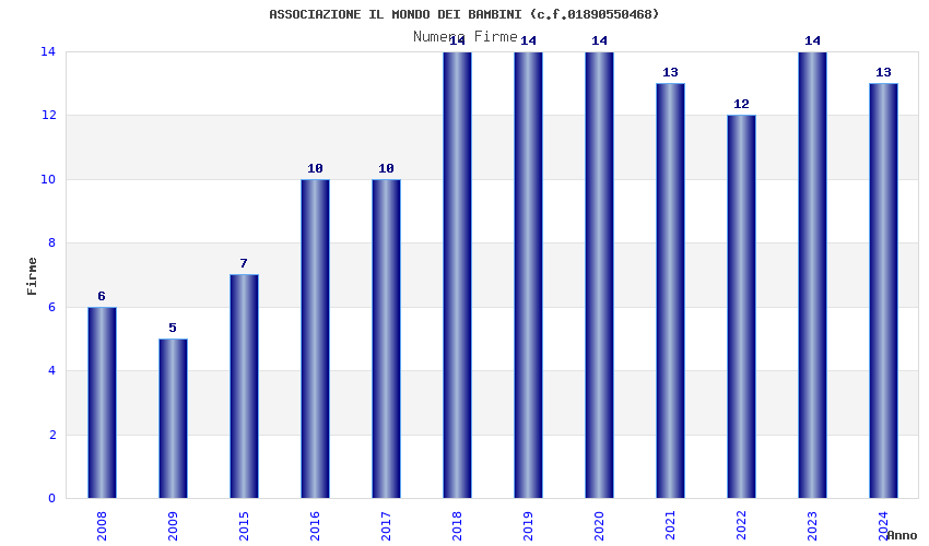 | Anno | Firme | Importi | Media | Naz. | Reg. | Prov. | Comu. |
